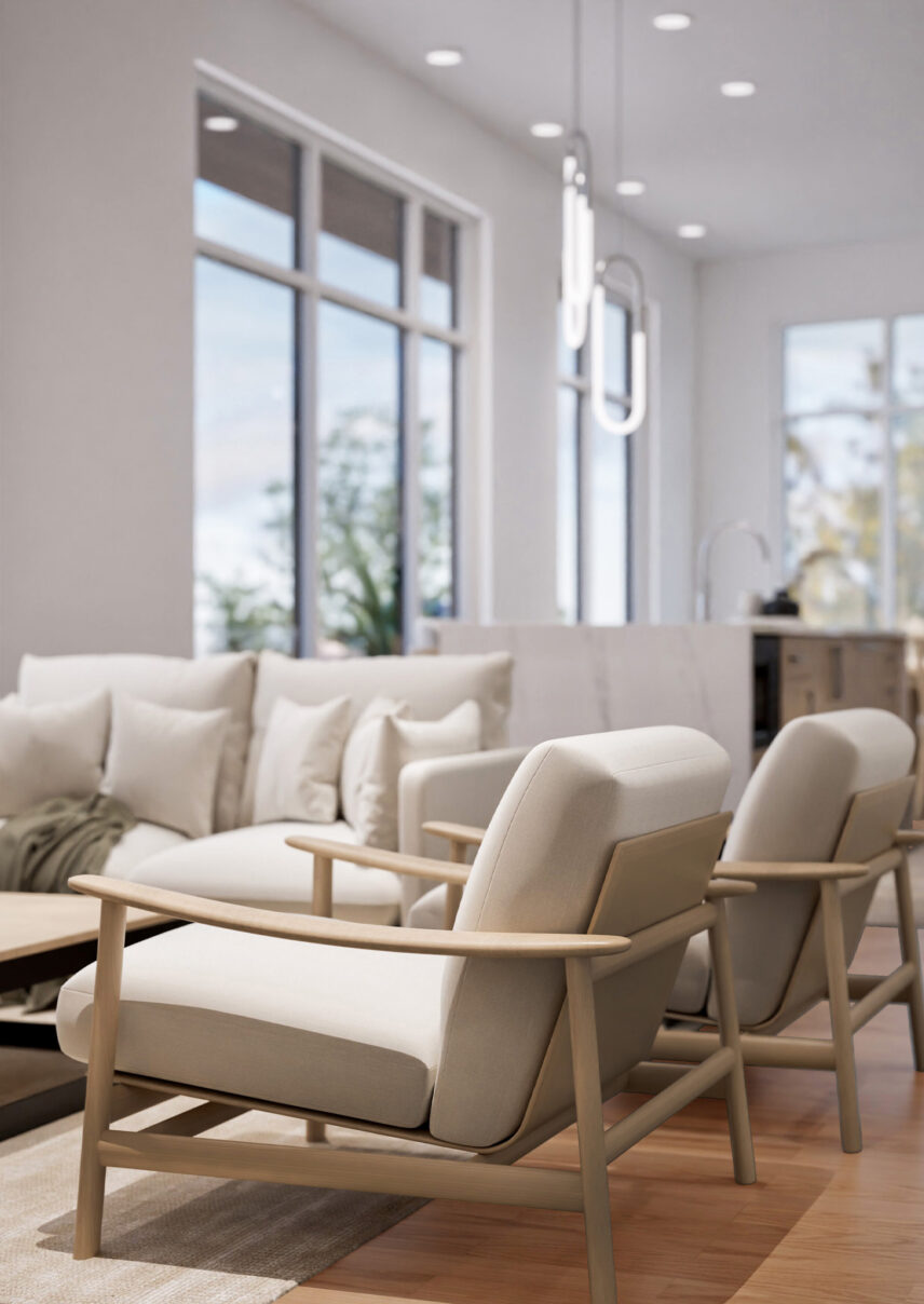 At the heart of each residence is a design philosophy that balances elegance with everyday comfort. Interiors by Kimberly Williams Interiors feature wide-plank hardwood flooring, expansive windows, and refined natural finishes. Kitchens by Harbour City Kitchens combine function with timeless design, enhanced by premium appliance packages from Wolf, Fisher & Paykel and Electrolux.