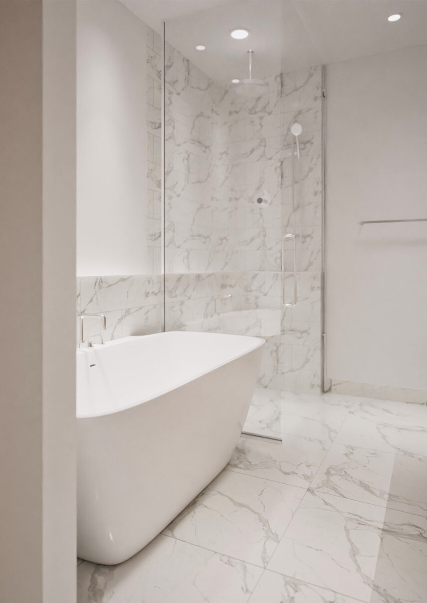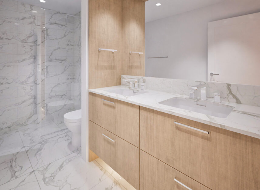 Bathrooms at Tiller + Grace are designed as private retreats: calm, modern and beautifully finished. Frameless glass showers, radiant in-floor heating and soft integrated lighting create spaces that feel like a luxury spa at home.