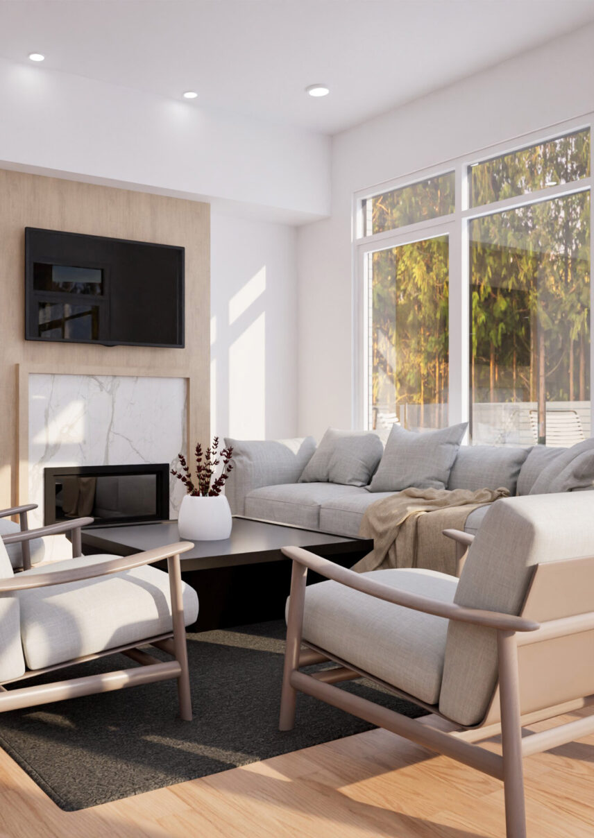 From the moment you step inside, each residence feels warm, inviting and thoughtfully detailed. Expansive windows flood the interiors with natural light, while wide-plank hardwood floors and clean architectural lines create a timeless sense of style. Subtle design touches bring a feeling of quiet luxury to every room.