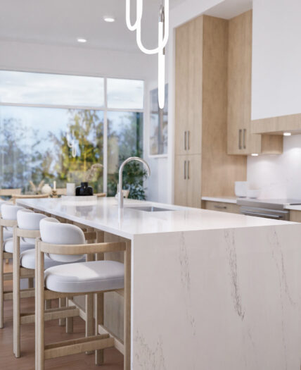 At the heart of every home is a kitchen designed for both function and beauty. Custom cabinetry by Harbour City Kitchens pairs seamlessly with quartz countertops, premium appliances and refined lighting details. Whether hosting friends or preparing a quiet meal at home, these kitchens bring restaurant-quality performance to daily living.